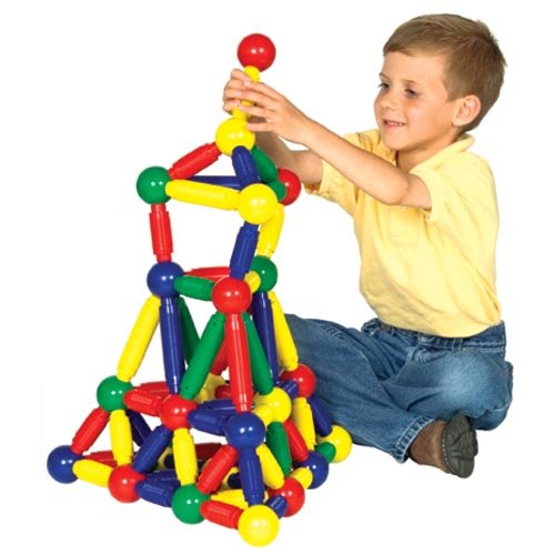 My children (age 6 and 2) have built some pretty neat things with Magneatos. Unlike the tiny metal balls and rods in a Magnetix, the large rods and balls do not pose a choking hazard. The rods come in two different lengths, that allow the child to explore a wide range of geometric structures.Pluses:* It is easy for kids to build complicated geometric structures. The magnetic rods teach kids the properties of magnets.* In order to build tall structures, the child has to learn how to build strong "crystalline" structures on the lower levels.* It is easy (and automatic) for young children to assemble balls to rods. No fine manual-dexterity required here!Minuses:* There are 144 pieces to return to the box each time. Half of the parts roll, which means that they are distributed evenly throughout the house when it is time to put them away.* The toy has an additional use as a collection of 40 or so 3" hard plastic covered lightweight metal balls that your child will throw around the house (and my two year-old does just that). My two year old has constructed an improvised atl-atl by putting a ball on the end of a rod and then slinging the ball.* The ratio between the mass of the parts and the strength of the magnets is less than for the smaller building sets. This means that models will be a bit more fragile than Magnetix models. You cannot build structures that are as tall and your children cannot play with the model they build or carry it to their parents.